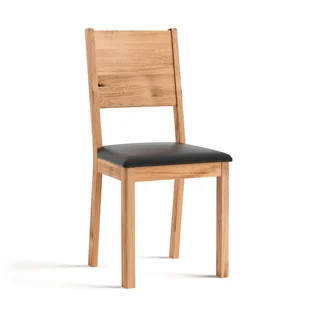 Krzesło zostało obite ekoskórą – idealnie łączącą wieloletnią trwałość z atrakcyjną, ekskluzywną stylistyką. Utrzymanie jej powierzchni w optymalnym stanie wizualnym nie jest wymagające, gdyż, w przeciwieństwie do skóry naturalnej, nie wymaga zabiegów pielęgnacyjnych. Pod spodem znajduje się pianka tapicerska, która z kolei dba o komfort wypoczynku domowników i gości. Krzesło Prato – niezbędny dodatek do każdego stołu Kolorystyka mebla może się różnić w zależności od ustawień odcieni na ekranie, jednak staramy się, aby nie odbiegał od rzeczywistych barw. Dębowe krzesło z czarnym siedziskiem świetnie łączy się z dowolnym stołem, szczególnie wykonanym z tego samego gatunku drewna, który znajdziesz również w naszym sklepie.