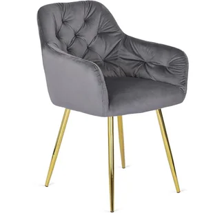 Krzesło welurowe RAYA to elegancki mebel, który doskonale wpasuje się w nowoczesne wnętrza, takie jak salon, kuchnia czy jadalnia. Jego styl glamour podkreślają złote, metalowe nogi oraz popielata tapicerka z tkaniny velvet, która jest miękka w dotyku i efektownie pikowana. Krzesło charakteryzuje się starannym wykonaniem z dbałością o detale, co zapewnia estetyczny wygląd i trwałość. Kubełkowe oparcie, wypełnione miękką pianką tapicerską, gwarantuje wygodę i doskonałe dopasowanie do pleców, co sprawia, że siedzenie na nim jest bardzo komfortowe. Wymiary krzesła to 81 cm wysokości, 56 cm szerokości i 60 cm głębokości, z siedziskiem na wysokości 48 cm, szerokości 40 cm i głębokości 45 cm.