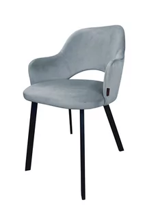 Krzesło Milano noga czarna PROFIL BL06 szary błękit Wygodne krzesło tapicerowane aksamitną tkaniną na drewnianym stelażu, z pewnością odpowiada współczesnym wymaganiom jaki są bezwzględnie: jakość, wygoda oraz design. Wysoki komfort użytkowania zapewni Państwu ergonomiczne, bardzo dobrze wyprofilowane oparcie. Pojedyncze nogi krzesła wykonane zostały z metalowych profili malowanych proszkowo w kolorze czarnym. Dane techniczne: