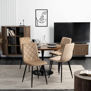 Krzesło Tapicerowane do Jadalni FORIS Beżowe Welurowe Nowoczesne Loft
