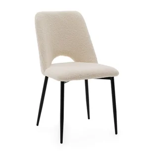 Krzesło ORO nie tylko wzbogaci Twoje wnętrze, ale także sprawi, że każda chwila spędzona przy rodzinnym stole, stanie się o wiele bardziej komfortowa i przyjemna. Miękkie siedzisko i oparcie jest obite modną tkaniną typu boucle, a całość stylowo dopełniają solidne, czarne nóżki malowane proszkowo.