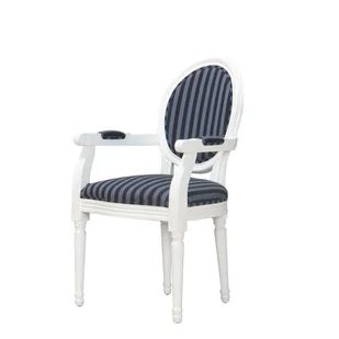 Krzesło do jadalni w stylu rokoko/Amaretta z podłokietnikami w kolorze antycznej bieli, antyczne patynowane tkaniną w czarne paski to krzesła stołowe w kolorze białym, które wnoszą do Twojego domu zarówno styl, jak i funkcjonalność. Piękne klasyczne krzesło w romantycznym stylu z podłokietnikami w kolorze antycznej bieli z tkaniną w czarne paski. Krzesło dostępne jest również w innych kolorach z podłokietnikami i bez. Każde krzesło jest wykonywane ręcznie, co nadaje każdemu krzesłu niepowtarzalny wygląd. Solidne meble wysokiej jakości z duszą.