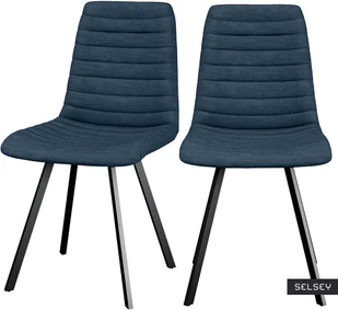 SELSEY Zestaw dwóch krzeseł tapicerowanych Kimmy granatowe na metalowych czarnych nogac