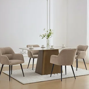 Z tapicerką z efektem weluru i czarną metalową podstawą, krzesło HEKA doskonale wpasowuje się w obecne trendy. W kuchni lub jadalni wniesie ciepły klimat i doda przytulności. Dodatkowo, miękkie siedzisko, tapicerowane oparcie i podłokietniki zapewnią wygodę podczas przyjemnych posiłków.