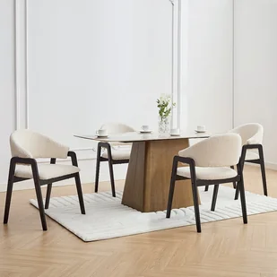 Krzesła SOLUNA to idealny wybór do minimalistycznych wnętrz z naturalnym akcentem. Wyściełane siedzisko i oparcie, buklowa tapicerka oraz solidna podstawa z drewna kauczukowego to gwarancja najwyższego komfortu i nienagannego stylu.