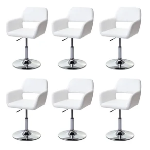 - Zakres dostawy: 6x krzesła do jadalni - Wytłaczana skóra (100% poliuretan) - Szorstka lub chromowana podstawa - Udźwig do max. 110 kg - Obrotowe 360° - Regulowana wysokość - Bardzo duża tarczowa podstawa dla większej stabilności - Niepoślizgowe dzięki gumowanej podstawie - Zaokrąglone rogi i krawędzie - Z podłokietnikami - Design retro - Łatwe w montażu