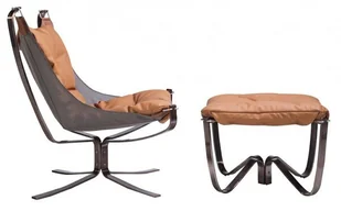Fotel ARNI LOW z podnóżkiem Fotel wypoczynkowy z podnóżkiem ARNI LOW pomarańczowa ekoskóra, podstawa miedziana HE469-3-HE456-3#18