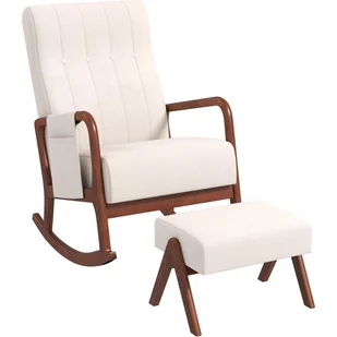 ——Ergonomiczny fotel bujany – Wyściełane poduszki z gąbki o wysokiej gęstości zapewniają elastyczne podparcie i większy komfort siedzenia. Ponadto zakrzywione oparcie pomaga złagodzić zmęczenie, a podłokietniki pozwalają wygodnie oprzeć ręce.