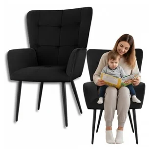 Fotel uszak czarny do salonu tapicerowany welurowy tapicerowany