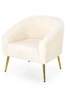 Fotel Grifon marki Halmar to mebel w nowoczesnym stylu przykuwający uwagę nietuzinkowym wykonaniem i niezwykle przytulną tkaniną boucle. Obszerne siedzisko gwarantuje maksimum komfortu i zadowolenia z użytkowania zarówno w domowym salonie, czy poczekalni miejsca publicznego użytku. Kubełkowe oparcie, będące jedną bryłą z podłokietnikami i siedziskiem nadaje fotelowi nowoczesnego designu. Podstawa to cztery chromowane nogi, w złotym wybarwieniu, które są najnowszym trendem wnętrzarskim. Nowatorska tkanina boucle jest absolutną nowością we wnętrzach, nadając im niezwykle przytulnego charakteru.