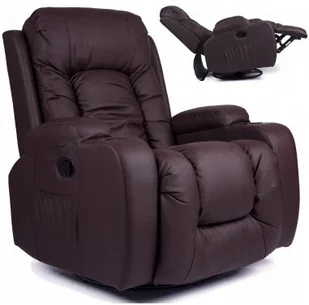 Prezentowany fotel rozkładany z funkcją masażu to elegancka i funkcjonalna propozycja dla wszystkich entuzjastów komfortowych foteli wypoczynkowych. Fotel tapicerowany jest gładką w dotyku skórą ekologiczną. Stelaż wykonany jest z metalu. Fotel pozwala użytkownikowi na rozłożenie oparcia oraz podnóżka, dzięki czemu można w nim swobodnie uciąć sobie popołudniową drzemkę. Ponadto wyposażony jest w funkcję masażu, funkcję kołyski i obrotową podstawę.