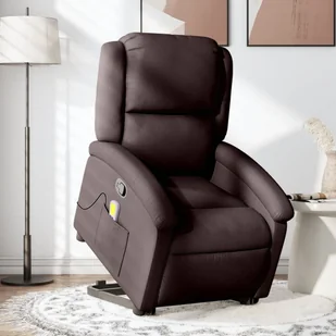 vidaXL Podnoszony fotel masujący, rozkładany, ciemnobrązowy, tkanina