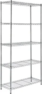 Amazon Basics Wąska szafka do przechowywania, z 5 półkami o regulowanej wysokości, z nóżkami poziomującymi, udźwig maksymalny 680 kg, 35,5 x 91,4 x 182,8 cm (gł. x szer. x wys.), chrom