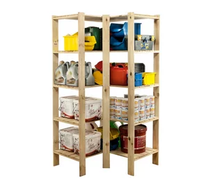 5 Nośność: 120 kg Materiał: Drewno sosnowe Kolor: Naturalny Wykończenie: Surowy 5 - piętrowy narożny regał z kolekcji MAXI. Posiada 5 półek ażurowych o nośności do 120 kg każda (pod warunkiem równomiernego rozmieszczenia ciężaru na całym regale).