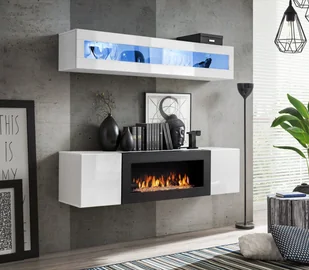 ASM Meble Meblościanka FLY N2 biały połysk/biały mat z biokominkiem