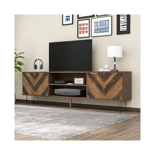 - Dwie przestronne przegrody: Ta szafka pod telewizor jest wyposażona w dwie pary drzwi, które kryją obszerne przestrzenie do przechowywania, idealne do przechowywania płyt DVD, pilotów i innych akcesoriów multimedialnych.