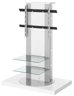 Stolik RTV oprócz półek składa się także z solidnej podstawy oraz obrotowego słupka wraz z uchwytem, na którym zawiesisz płaski telewizor do 55 cali. Korpus mebla dodatkowo wyposażony został w obustronne półki służące do przechowywania płyt CD oraz w miejsce do ukrycia przewodów. Dolną podstawę szafki RTV z powodzeniem można wykorzystać jako dodatkowe miejsce do ustawienia sprzętu rtv czy dekoracji. Możliwość obracania telewizora o 360 stopni to prawdziwy hit wśród dostępnych modeli szafek rtv. Dzięki takiej funkcji widz ustawia ekran telewizora według własnych preferencji.