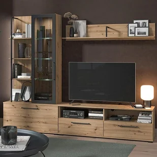 Ścianka RTV DUBLIN jest doskonałym rozwiązaniem oferującym dużą powierzchnię do instalacji odbiornika telewizyjnego czy wieży hi-fi. Poza szerokim blatem do ustawienia odbiornika telewizyjnego ścianka posiada wnęki, szuflady oraz szafkę, tworzące doskonale zaplanowaną przestrzeń do przechowywania. Książki, płyty CD, DVD i inne przedmioty od dziś będą miały swoje nowe miejsce.