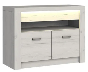 Brzegi mebla zostały precyzyjnie oklejone specjalistycznym tworzywem ABS o zwiększonej odporności na ścieranie i wilgoć. Drzwi zamontowane na 35 mm zawiasach puszkowych, regulowanych w 3 płaszczyznach są otwierane uchylnie za pomocą stylowych uchwytów z trwałego metalu. Wnętrze mebla zostało zorganizowane w wyjątkowo funkcjonalny sposób. W górnej części umieściliśmy praktyczną otwartą półkę na sprzęt audio, dekoder lub nagrywarkę. W dolnej, zamykanej szafce zmieszczą się dokumenty, płyty lub akcesoria.