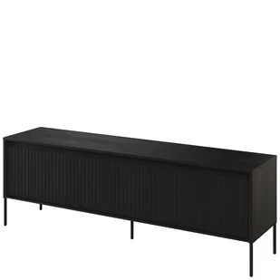 Czarna szafka RTV TREND TR-05 ryflowana z oświetleniem / frezowanie prosteKażdy salon potrzebuje praktycznej szafki pod telewizor, która pozwoli rozmieścić urządzenia multimedialne oraz przechowywać elektroniczne gadżety. Starannie zaprojektowana czarna szafka RTV TR-05 z kolekcji TREND spełnia te wymagania, oferując najwyższą funkcjonalność i estetykę. Nie tylko stanowi praktyczne miejsce do przechowywania, ale również spełni rolę designerskiego elementu dekoracyjnego. Szafka pod telewizor TR-05 została wykonana z wysokiej jakości materiałów, co gwarantuje jej trwałość i solidność. Dzięki pojemnym półkom zyskujesz mnóstwo miejsca do przechowywania konsol, pilotów, filmów, gier wideo i innych akcesoriów.