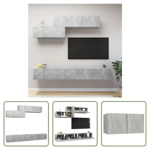 Kolor: betonowy szaryMateriał: Materiał drewnopochodnyWymagany montaż: TakDostawa obejmuje: 3 x szafka TV: 60 x 30 x 30 cm (szer. x gł. x wys.)1 x szafka pod TV: