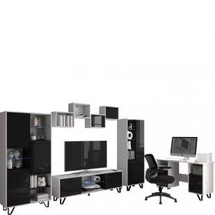 Zawartość zestawu: Biurko BOS-01, Półka BOS-07, Szafka wisząca BOS-08, Regał BOS-10, Regał BOS-11, Szafka RTV BOS-13;