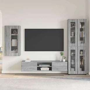 Kolor: Szary sonoma Materiał: Materiał drewnopochodny Skończyć: Matowienie Ciężarki: 69,9 kg Trwały Duża przestrzeń do przechowywania Z 2 szufladami Z 11 półki z płyty Materiał ramowy: Materiał drewnopochodny Z 5 drzwi na zawiasach Tylko do użytku wewnątrz Contain dostaw: 1 x szafka wisząca (50 x 29 x 100 cm) 1 x szafka TV (150 x 39 x 30 cm) 1 x Wieża (60 x 35 x 182 cm) Wymagany montaż: Tak W zestawie montaż: Mocowania ścienne / sufitowe - np. konkretne śruby lub kołki rozporowe - nie wliczone