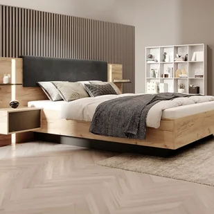Łóżko ELYNIA z szafkami nocnymi to idealny wybór do stworzenia eleganckiej i nowoczesnej sypialni. Oferuje ona praktyczną przestrzeń do przechowywania dzięki 2 wbudowanym szafkom nocnym, a oświetlenie LED stwarza we wnętrzu ciepłą i relaksującą atmosferę.