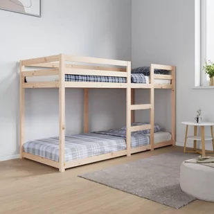 Materiał: Lite drewno sosnowe (nieobrobione)Wymiary całkowite: 195,5 x 80,5 x 112 cm (dł. x szer. x wys.)Odpowiedni rozmiar materaca: 75 x 190 cm (szer. x dł.) (materac nie wchodzi w skład zestawu)