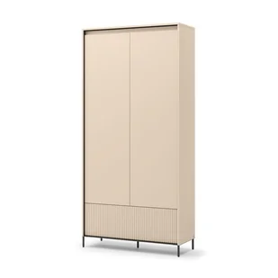 Szafa TREND to perfekcyjne połączenie nowoczesnego designu i funkcjonalności, idealna do przedpokoju. Wyposażona w 2 drzwi, 7 pojemnych półek oraz 1 szufladę, szafa zapewnia doskonałą organizację przestrzeni. Subtelne, minimalistyczne wzornictwo z dekoracyjnym frezowaniem na dolnej części frontów nadaje szafie elegancki wygląd, a metalowe nogi w czarnym kolorze dodają lekkości. Korpus i fronty wykonane z wysokiej jakości płyty laminowanej zapewniają solidność, a oświetlenie LED subtelnie podkreśla całość. Meble do samodzielnego montażu – idealne rozwiązanie do wnętrz, które łączą estetykę i praktyczność.