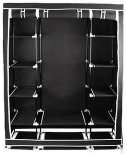 Podwójna składana szafa z półkami na ubrania, ręczniki itp. Doskonale ochroni Twoją odzież przed kurzem, pyłem. Unikniesz wygniecenia ubrań na ciasnej półce. W tej szafie powiesisz swoje ubrania na drążku, dzięki czemu zawsze będą wyglądały jak świeżo uprasowane.