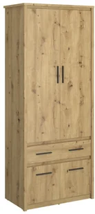 Czarne, metalwe uchwyty podkreślaja styl meble.