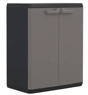 Niska szafka z żywicy pochodzącej z recyklingu, idealna do uporządkowania garażu, szopy ogrodowej lub pralni (tylko do użytku w pomieszczeniach). Składa się z 2 zamykanych na kłódkę drzwi, które zapewniają bezpieczeństwo Twoich rzeczy, oraz solidnej półki, która może utrzymać ciężar do 15 kg, aby pomieścić wszystko, czego potrzebujesz. Wymiary: 68 x 83 x 39 cm (szerokość x wysokość x głębokość).