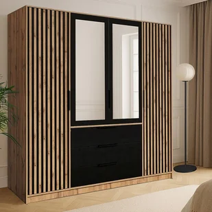 Szafa LIRMADA to doskonałe połączenie designu i funkcjonalności oraz kompleksowe rozwiązanie w zakresie przechowywania. Przestronna wnęka z drążkiem umożliwi wygodne zawieszenie nawet najbardziej delikatnych ubrań, a praktyczne szuflady i półki pomogą ci uporządkować resztę garderoby dokładnie tak, jak lubisz. Postaw na porządek w dobrym stylu z szafą LIRMADA!