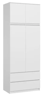 SZAFA BIAŁA GARDEROBA DO SYPIALI MONIA 2 DRZWI 2 SZUFLADY + NADSTAWKA BIAŁA