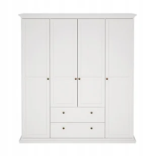 Szafa na ubrania biała 181 cm Paris 4 drzwiowa z szufladami półki drążek