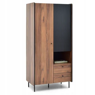 Szafa z szufladami 88 cm NORLAN - orzech / czarny