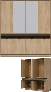 Szafa pokojowa z szufladami i lustrem Lamele Dąb Cremona Czarny FERRO FE11