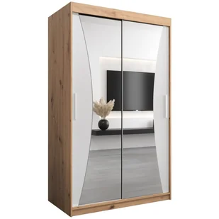 Szafa przesuwna dwudrzwiowa ubraniowa z lustrem i półkami Monaco 120 artisan sonoma czarna biała