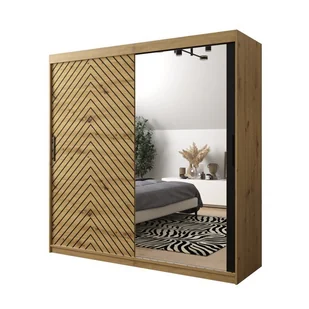 Szafa przesuwna dwudrzwiowa z lustrem do mieszkania w bloku JODEŁKA 2 200 dąb artisan czarna biała
