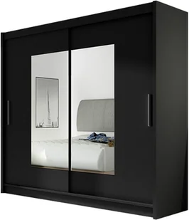 Szafa z drzwiami przesuwnymi London VII, Czarny / Lustro