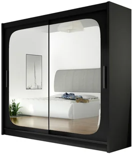 Szafa z drzwiami przesuwnymi London VIII, Czarny / Lustro
