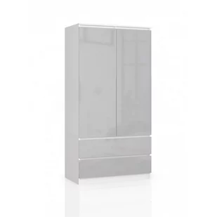 SZAFA S 90 cm 2 DRZWI 2 SZUFLADY BIAŁA / METALIK POŁYSK