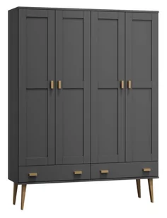 Szafa Venuci z funkcjonalnym wieszakiem oraz półką stanowi praktyczny, a zarazem niezwykle ciekawy stylistycznie element wystroju wnętrza. Wyróżnia się prostą, elegancką formą, precyzją wykonania oraz zastosowaniem najwyższej klasy surowców. Przestronne wnętrze umożliwi przechowywanie okryć wierzchnich, ubrań czy akcesoriów, a wysokie, stabilne nóżki pozwolą na łatwe porządkowanie przestrzeni pod meblem. Przedstawiamy czterodrzwiowy model o szerokości 155 cm, dostępny w kilku odcieniach - szarości, bieli, olchy, dębu, sosny oraz orzecha.