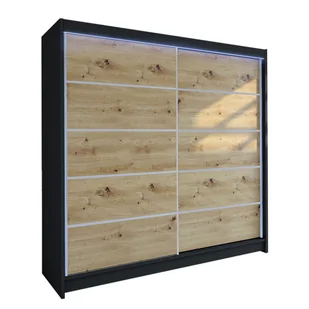 Szafa z drzwiami przesuwnymi Talin IV z oświetleniem RGB, Czarny / Dąb Artisan