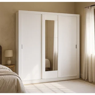 Łatwo zorganizuj swoje rzeczy dzięki szafie ROXANE z 3 garderobami, 3 szufladami i 6 półkami. Wyposażona w duże lustro i przesuwne drzwi, ta szafa zapewni Ci znaczną oszczędność miejsca i rozjaśni Twoją sypialnię.