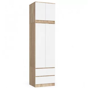 Szafa z nadstawką do sypialni 60 cm STAR - dąb sonoma-biała System Mebli: SYSTEM STAR Typ mebla: Stojący Szerokość: 60 cm Wysokość: 234 cm Długość: