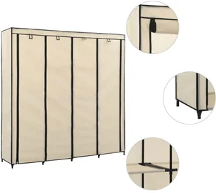 Charakteryzuje ją solidna żelazna rama, dzięki której szafa na ubrania jest łatwa do przenoszenia i wyjątkowo trwała. Dodatkowo posiada cztery przegrody, zapewniające wystarczająco dużo miejsca, aby zorganizować torby, buty lub mniejsze przedmioty w zasięgu ręki. Materiałowy pokrowiec z zamkami błyskawicznym chroni ubrania przed brudem i kurzem.