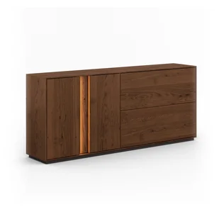 Każdy detal, od precyzyjnie wykończonych krawędzi po system tip-on, został zaprojektowany z myślą o wygodzie. Drzwi i szuflady otwierają się lekko; bez uchwytów, bez problemów. Stabilna konstrukcja natomiast daje pewność, że komoda przetrwa dosłownie całe lata intensywnego użytkowania. Komoda z naturalnego drewna dębowego Collodi – przestrzeń do przechowywania i dobry styl w jednym meblu Funkcjonalność? Komoda Collodi to przestrzeń, która rośnie razem z Twoimi potrzebami. Pojemne szuflady, przestronne szafki i subtelne oświetlenie LED tworzą idealne miejsce na wszystko, co chcesz mieć pod ręką, ale poza zasięgiem wzroku.
