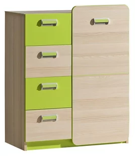 Komoda lorento l6 biały brylantowy / dąb jest meblem przeznaczonym do pokoju dziecięcego. Pozwoli na wygodne przechowywanie oraz segregację. Posiada drzwiczki i cztery szuflady z uchwytami. Wyposażona jest w półki. Komoda lorento l6 biały brylantowy / dąb została wykonana z płyty laminowanej.
